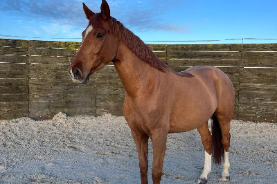 Top jument pour épreuve 120-125 (potentiel 130). Sa grand-mère a produit 4 chevaux au niveau 1.60m. Jument très bien mise sur le plat, facile et gentille au quotidien. Bon bilan radios.