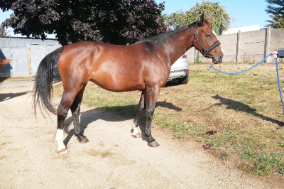: 1m64, bien dressée, volontaire, peur de rien. 1/2 frère indicé 135 cso Prix inférieur 15000 car dermite estivale (bien contrôlée par couverture l'été)