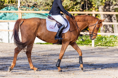 Superbe jument modèle sport, une boule d'énergie déjà très mature sur les barres. Très facile en parcours malgré beaucoup de sang. Faite pour de la compétition, prête sur un parcours d'1m20.