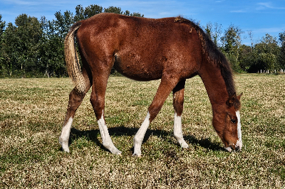 Points forts : Très belle pouliche Selle Français avec des grandes chaussettes blanches Avril 2025 Mère Danse avec moi (Fakir de Kreisker) sortie en 110cm puis reproduction Père le célèbre kilimandjaro Semilly.