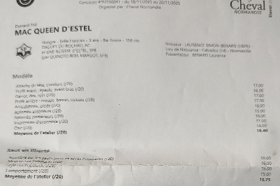 : Noté au régional de St-lô avec 17 en impression d'ensemble au modèle