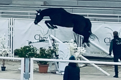 Points forts : Belle pouliche de 3 ans, bai foncé, avec du sang ,bonne technique de saut et du respect sur les barres.