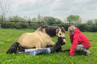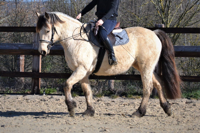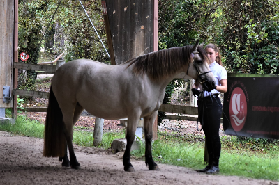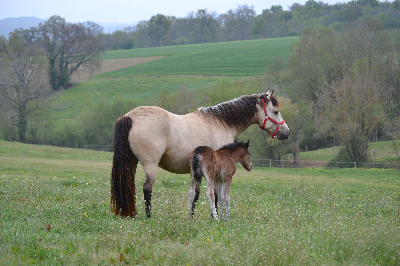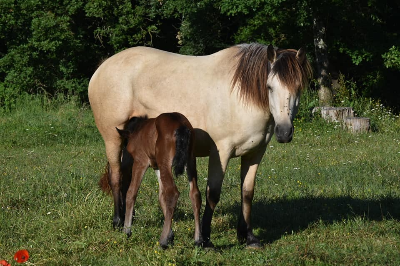 : Pouliniere avec du l'os, profondeur, elle se deplace bien, correct, excellent mere qui pouline facilement, super temperament, facile au soins, debourree. Monte dans le van et voyage bien.