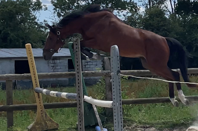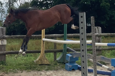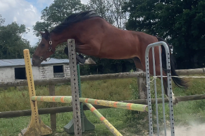 : Hongre de 3 ans. Maori est debourré, il commence à sauté monter, il est 3ème du concours local des 3 ans au Haras du Pin. Joli cheval qualiteux. Visite vétérinaire OK.