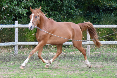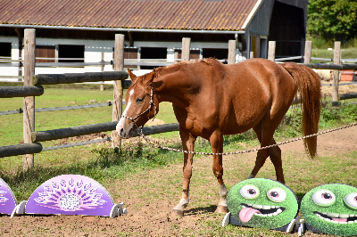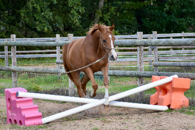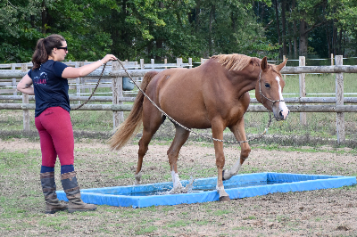 : Jeune cheval en cours de débourrage de manière éthologique par une pro Son père est gagnant en attelage en Belgique
