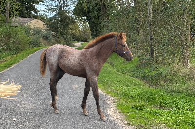 Points forts : Petit élevage familiale,. Poulain manipulé par tous, vermifugé, paré. Calme et gentil, pourrait convenir pour carrière sportive ou tout simplement poney de famille. Ballades en groupe. Toisera ~145