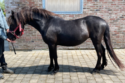 Points Forts : Jolie pouliche noire,3 ans manipulée, monte en van, Un premier débourrage a été réalisé sous la selle ,Elle peut être mise au travail ou à la reproduction.