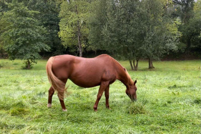 Poulinière pleine de l'étalon CATOVER. Poulinage estimé le 18/03/2026