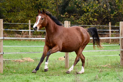 Points Forts : Très gentille jument , débourré aux 3 allures par Jason Derache diplomé BFEEE 1 & 2, cursus Horsemanscience by Andy Booth. Montée en licol ou filet.
