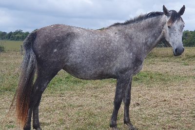 Points forts : Jolie jument avec une très bonne origine (lignée Café Crème, meilleure poulinière classement Hippomondo 2023, lignée directe de Quaprice Bois Margot), élevée par nos soins, débourrée, très facile.